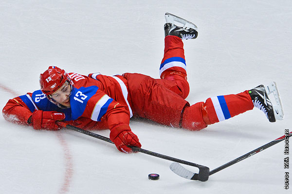 Павел Дацюк (Россия) в матче квалификационного раунда между сборными командами России и Норвегии в соревнованиях по хоккею среди мужчин на XXII зимних Олимпийских играх в Сочи.