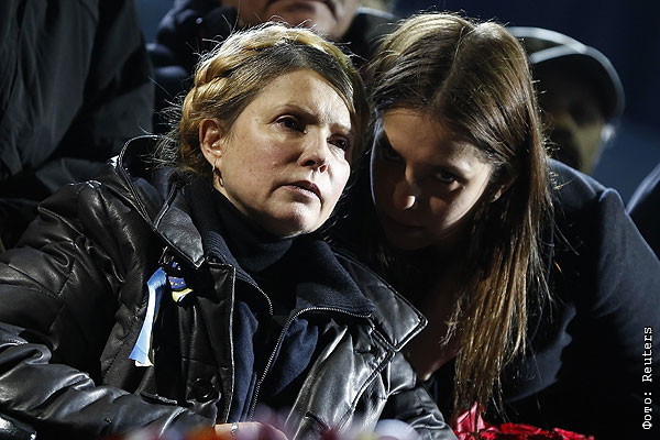 Бывшая глава правительства Украины Юлия Тимошенко с дочерью Евгенией на Майдане.