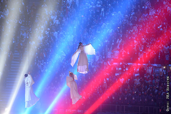 Артисты во время церемонии закрытия XXII зимних Олимпийских игр в Сочи.