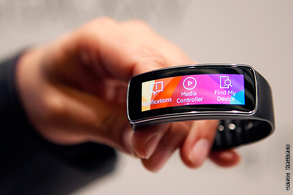 Samsung выходит на бурно развивающийся рынок спортивных устройств - компания показала гаджет Gear Fit, больше похожий на "умную" наручную повязку. Устройство оснащено гибким дисплеем на органических светодиодах, сенсором сердцебиения, шагомером и другими полезными функциями. Например, Gear Fit поможет владельцу найти потерявшийся телефон.