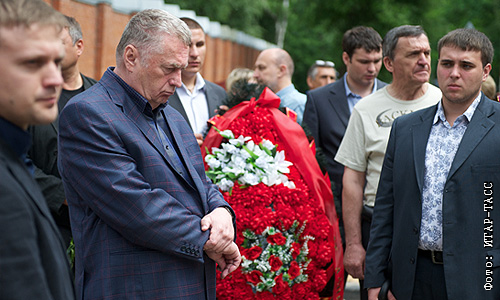 Лидер ЛДПР Владимир Жириновский на церемонии похорон бывшего полковника Юрия Буданова на центральном кладбище Химок.