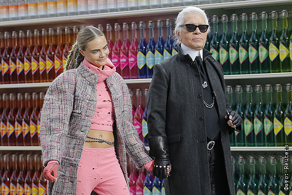 модель Кара Делевинь и дизайнер Карл Лагерфельд во время показа модного дома Chanel.