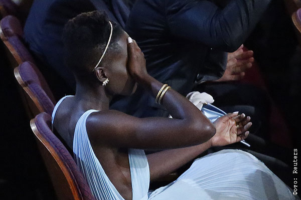 Лупита Нионго закрывает глаза и получает "Оскар" за лучшую женскую роль второго плана в фильме "12 лет рабства".