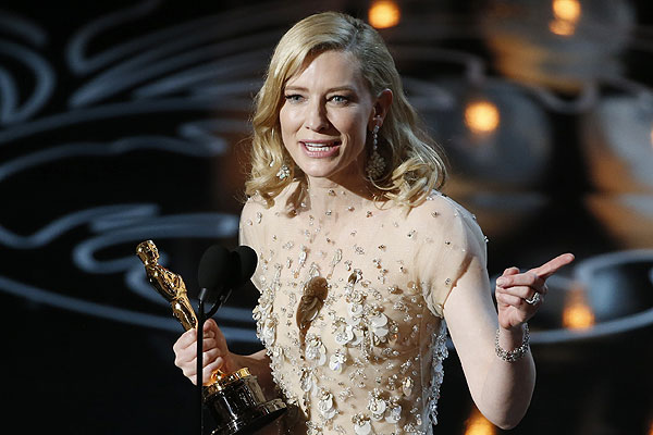 Кейт Бланшетт со статуэткой за лучшую женскую роль в фильме Вуди Аллена "Жасмин".
