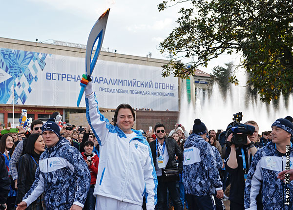 Генеральный директор Первого канала Константин Эрнст во время эстафеты паралимпийского огня в Сочи.