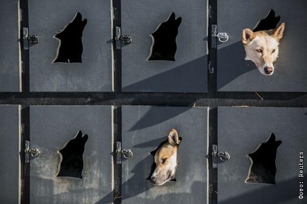 Ездовые собаки в ожидании начала гонки на Аляске.