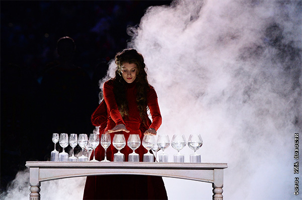 Артисты во время театрализованного представления на церемонии открытия XI зимних Паралимпийских игр в Сочи.