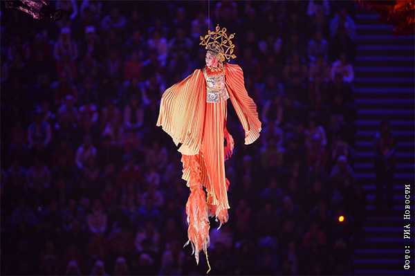Артистка во время театрализованного представления на церемонии открытия XI зимних Паралимпийских игр в Сочи.
