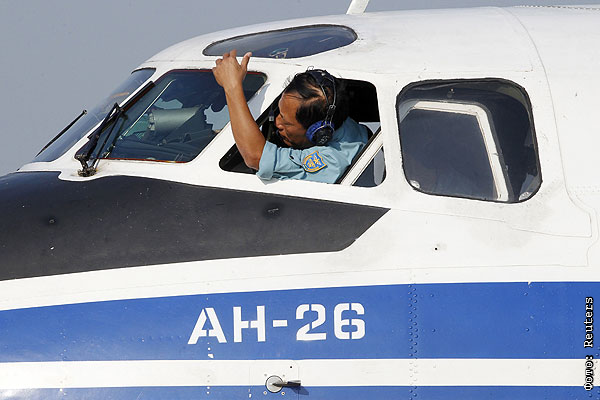 Пилот вьетнамских ВВС в кабине самолета АН-26, вылетавшего на поиски пропавшего борта.