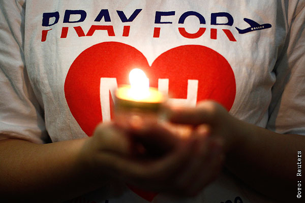 Горящая свеча во время молитвы за пассажиров малайзийского Boeing-777.