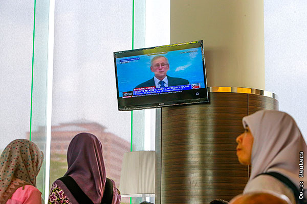 Во время трансляции пресс-брифинга, собранного в связи с информацией об обнаружении предполагаемых обломков малайзийского Boeing-777.