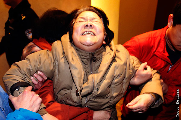 Родственники пассажиров пропавшего малазийского авиалайнера устроили акцию протеста у здания посольства Малайзии в Пекине, сообщают во вторник китайские СМИ. Около 200 человек требуют "ответов на вопросы", они хотят узнать всю правду о судьбе своих близких. "Мы хотим вернуть наших родных", - скандируют некоторые из демонстрантов. На фото рыдающая женщина, потерявшая кого-то из родственников.
