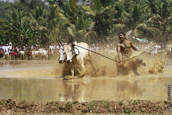 Индийское родео с буйволами.