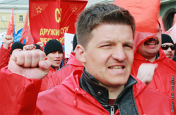 Участники акции "Марш братства и гражданского сопротивления" во время шествия под лозунгами "Против Майдана!" и "Фашизм не пройдет!".