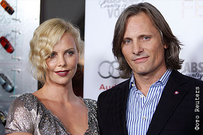 Шарлиз Терон и Вигго Мортенсен перед показом фильма "Дорога" на фестивале Американского Киноинститута в Голливуде
