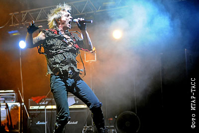 Лидер рок-группы "Алиса" Константин Кинчев во время выступления на концерте "Шестой лесничий - 20 лет спустя!" в ГЦКЗ "Россия" в Лужниках