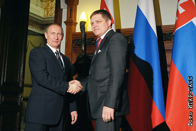 Премьер-министр РФ Владимир Путин и премьер-министр Словакии Роберт Фицо (слева направо) во время встречи