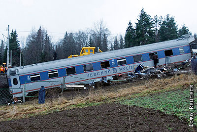 По факту крушения пассажирского поезда "Невский экспресс" возбуждено уголовное дело по двум статьям УК РФ - "Терроризм" и "Незаконное хранение огнестрельного оружия или взрывчатых веществ", сообщила "Интерфаксу" официальный представитель Генпрокуратуры РФ Марина Гриднева
