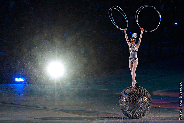 Артистка выступает во время театрализованного представления на церемонии закрытия XI зимних Паралимпийских игр в Сочи.