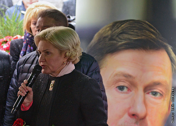 Заместитель председателя правительства РФ Ольга Голодец во время церемонии прощания с экс-министром и бывшим сенатором Александром Починком на Новодевичьем кладбище в Москве.