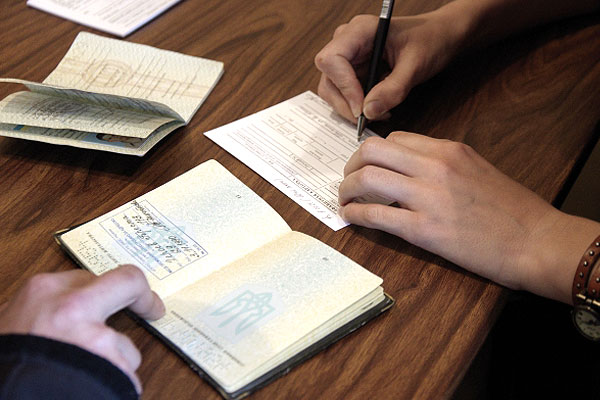 Украинский военнослужащий во временном пункте постановки на воинский учет на территории воинской части 51330 в Севастополе.