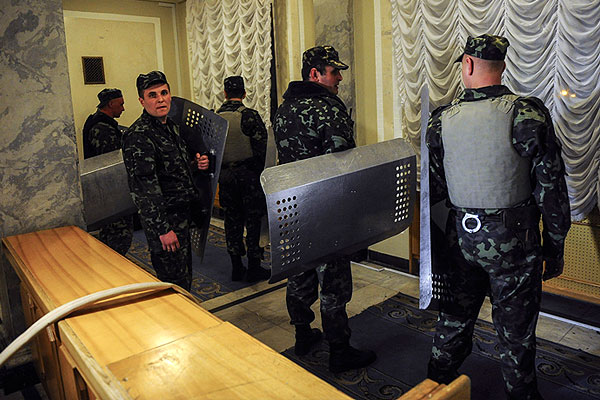 Служба безопасности Верховной рады со щитами готова встретить прорывающихся в здание активистов "Правого сектора".