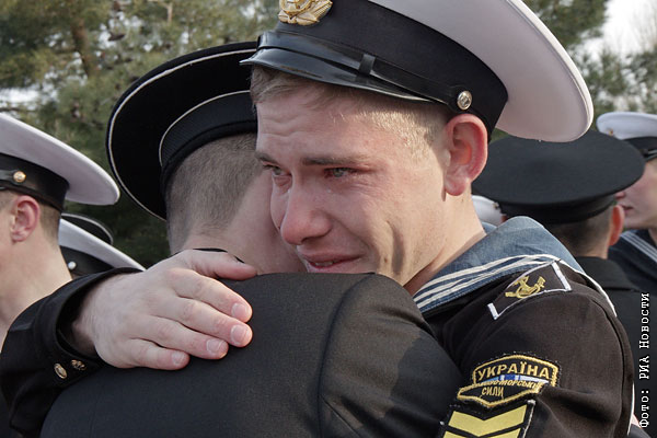 Курсанты-украинцы и офицерский состав покидают Нахимовское военно-морское училище.
