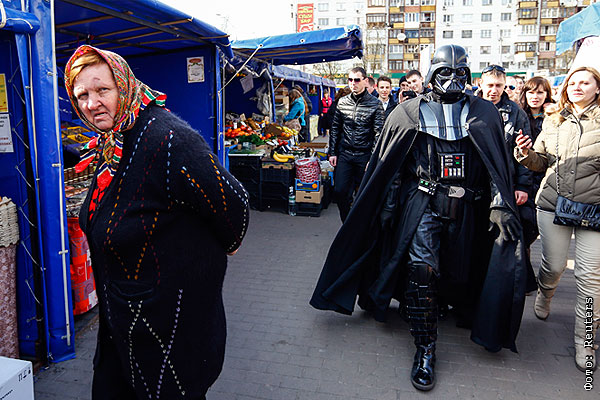 Дарт Вейдер осматривает торговые ряды в Киеве.