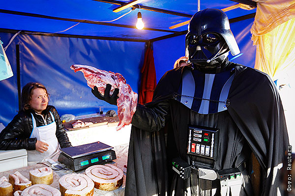 Дарт Вейдер осматривает мясные торговые ряды в Киеве.