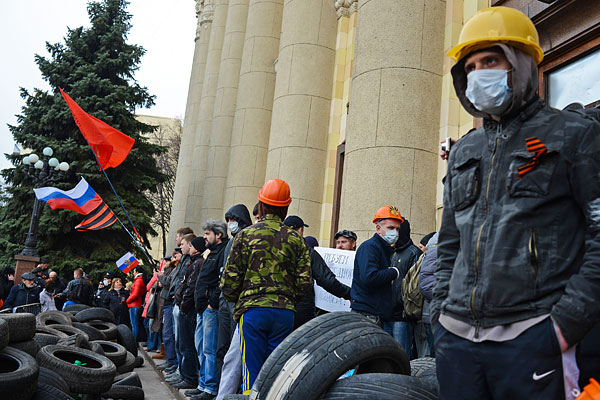 Пророссийские активисты у здания Областной администрации Харькова.