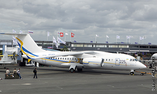 Пассажирский самолет Ан-158 на 49-м Международном аэрокосмическом салоне "Париж Аэрошоу - 2011" в Ле-Бурже.