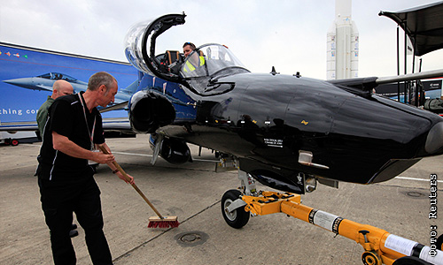 Самолет Hawk T2 fighter на 49-м Международном аэрокосмическом салоне "Париж Аэрошоу - 2011" в Ле-Бурже.