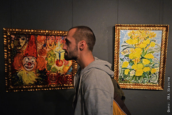 Посетитель на выставке живописи фигурантки дела "Оборонсервиса" Евгении Васильевой "Цветы из неволи" в галерее "Экспо-88".