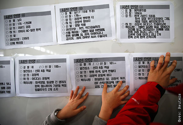 Сообщения с приметами погибших пассажиров парома "Севоль", тела которых были найдены.