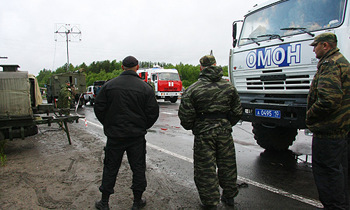 Сотрудники правоохранительных органов на месте крушения пассажирского самолета Ту-134 авиакомпании "РусЭйр", совершившего аварийную посадку недалеко от взлетно-посадочной полосы аэропорта Петрозаводска.