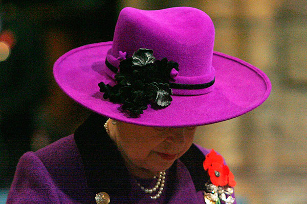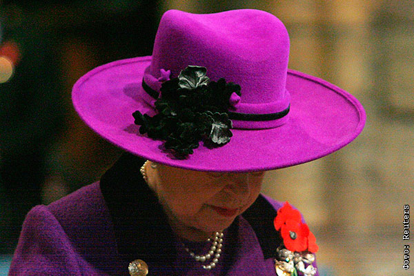 Королева Елизавета II во время памятной церемонии в честь жертв Первой мировой войны в Вестминстерском Аббатстве.