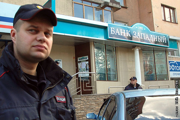 Сотрудники полиции у входа в отделение банка "Западный" в Белгороде. Утром в понедельник мужчина захватил заложников в белгородском отделении банка "Западный", у которого ЦБ отозвал лицензию.