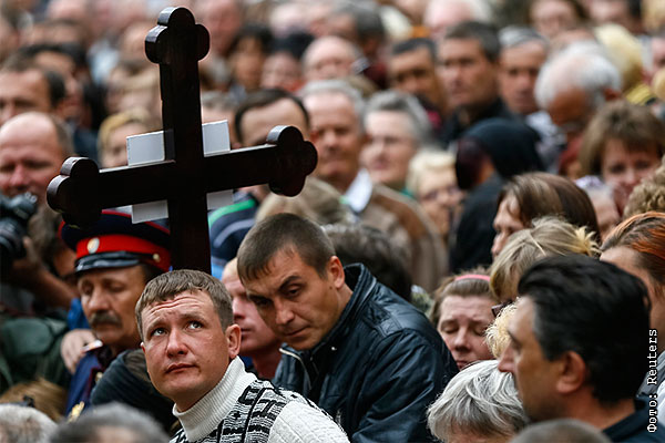 Похороны ополченцев, погибших на блок-посту в пасхальную ночь.