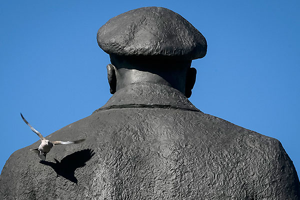 Голубь, облетающий памятник Ленину в Славянске.