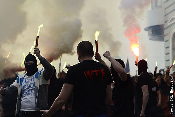 В воскресенье вечером в Харькове проходило шествие за единую Украину с участием харьковского "Металлиста" и днепропетровского "Днепра". В результате болельщики подрались со сторонниками федерализации страны.