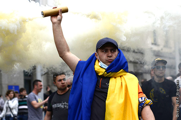 В воскресенье вечером в Харькове проходило шествие за единую Украину с участием харьковского "Металлиста" и днепропетровского "Днепра". В результате болельщики подрались со сторонниками федерализации страны.