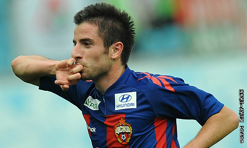 Игрок ЦСКА Зоран Тошич после забитого гола в матче чемпионата России по футболу: ЦСКА (Москва) - "Локомотив" (Москва).