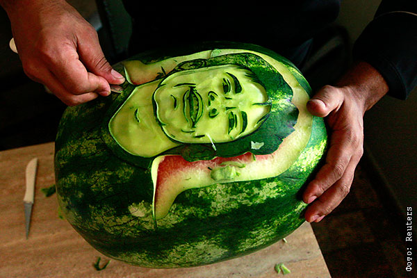 Повар Роджерио Оланда вырезает на арбузной корке портрет бразильского футболиста Неймара.
