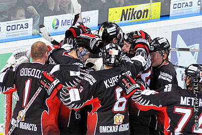 Игроки "Авангарда" после победы в матче чемпионата КХЛ: "Авангард" (Омск) - "Салават Юлаев" (Уфа) – 4:1