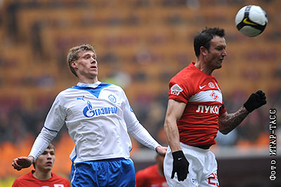 Игроки "Зенита" Павел Погребняк и "Спартака" Мартин Иранек (слева направо) в матче чемпионата России по футболу: "Спартак" (Москва) – "Зенит" (Санкт-Петербург) - 1:1