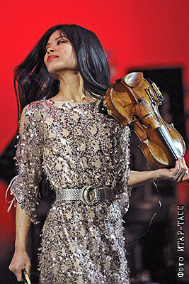 Скрипачка Ванесса Мэй во время выступления на концерте в Государственном Кремлевском Дворце