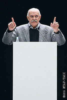Режиссер Никита Михалков во время выступления на Всероссийском чрезвычайном съезде Союза кинематографистов РФ в Гостином дворе