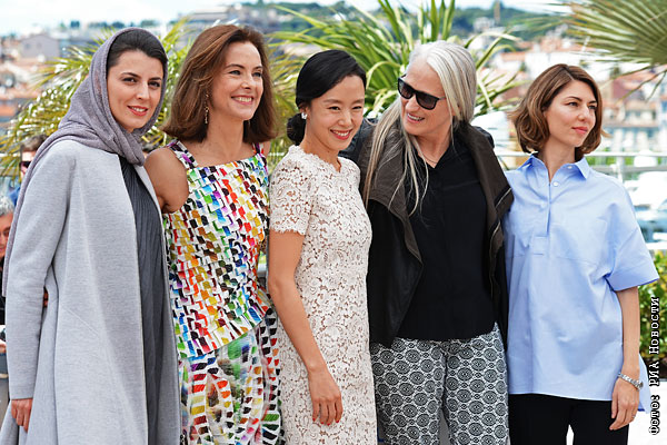 Члены жюри Каннского фестиваля (слева направо):актриса Лейла Хатами, актриса Кароль Буке, актриса Чон До Ен, режиссер и председатель жюри конкурса Джейн Кэмпион, режиссер София Коппола во время фотоколла перед церемонией открытия.