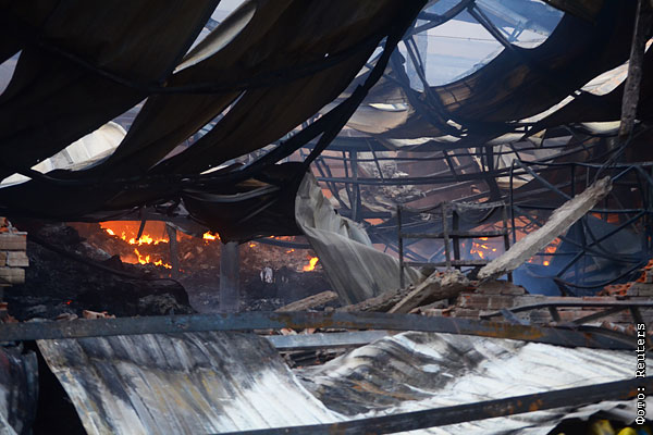 Сгоревшая обувная фабрика в южной провинции Бинь Дуонг.