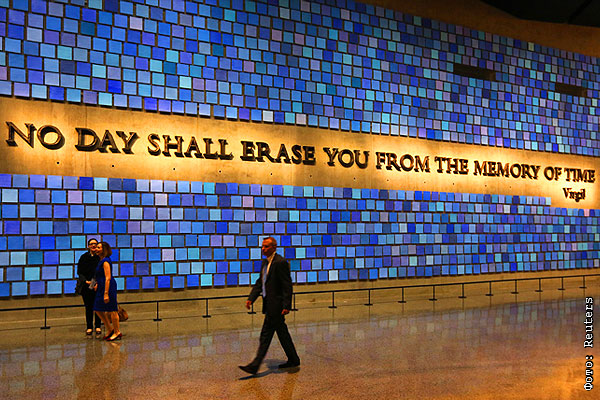 Цитата из Вергилия на одной из стен Национального мемориального музея 11 сентября: "Нет такого дня, который мог бы стереть тебя из памяти времен".